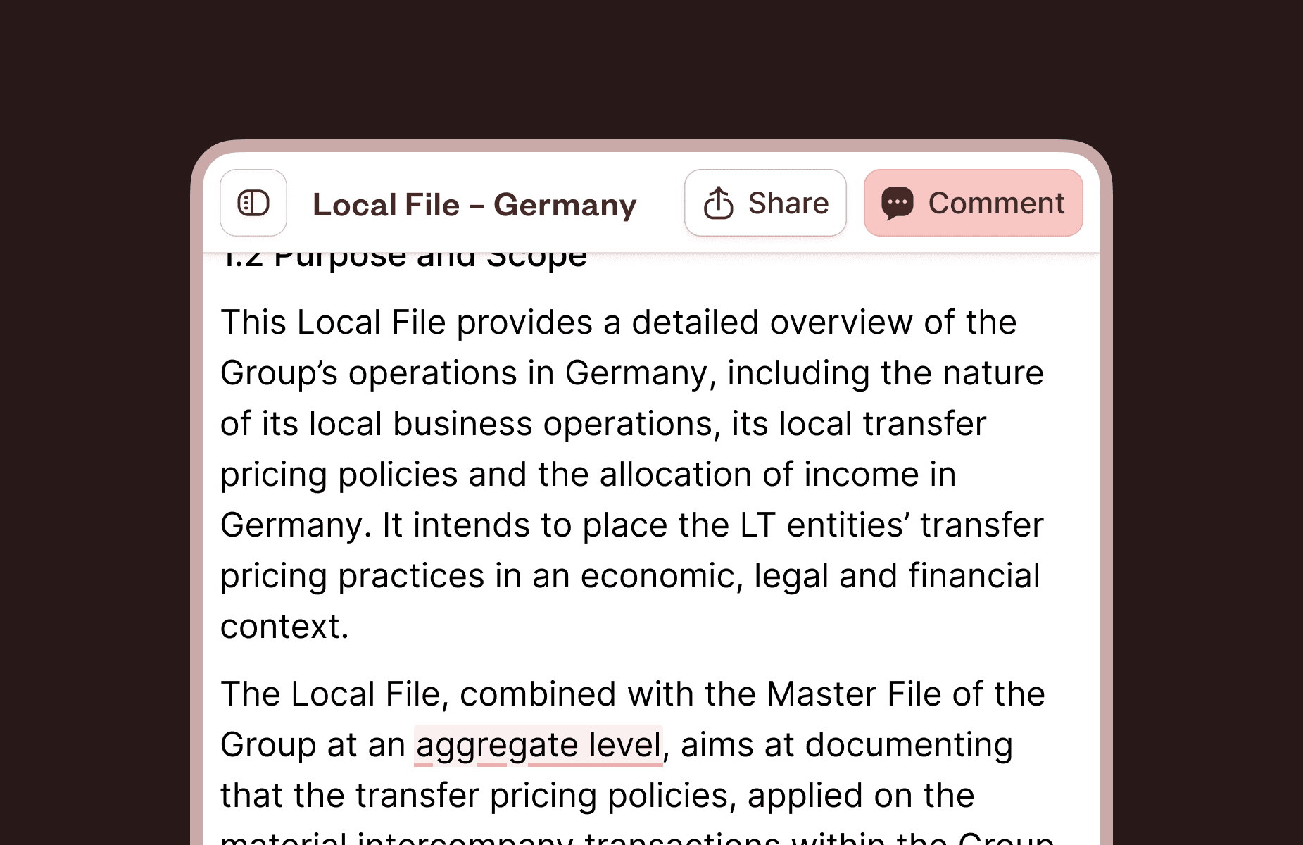 Deliver transfer pricing documentation with expert review, structured methodology and stronger supporting logic, so sign-off feels more confident and defensible.